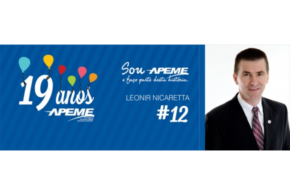 A equipe de colaboradores da APEME guarda um carinho muito grande pelo Ex-Presidente Leonir Nicaretta, que sempre buscou inovar e melhorar os processos na entidade, e foi um grande líder e exemplo para todos. A diretoria da época também foi muito unida em torno dos objetivos da entidade, capitaneados pelo Leonir. O otimismo e o pensamento sempre voltados a novos horizontes têm norteado e notabilizado Leonir Nicaretta e, mais do que isto, contagiado quem está em sua volta. Esta sua característica conquista o respeito por onde passa, tornando-se um líder nato pela sua postura e coerência no que diz e faz. E assim foi nascendo um grande líder, de visão, dinamismo e que usou seus talentos em favor das pequenas empresas. Temos muito orgulho pelo desenvolvimento desta liderança que hoje contribui com tantas outras entidades em nosso município e estado!