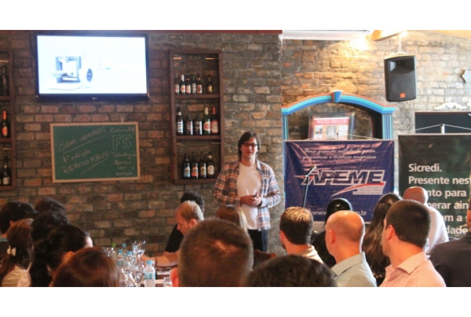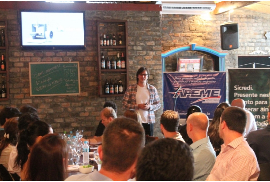 A abertura foi feita pelo presidente da entidade, Luciano Frübel. O palestrante foi Rodrigo Krug, inventor da primeira impressora 3D do Brasil. Rodrigo apresentou sua história, como iniciou e terminou outras empresas e como chegou ao patamar de hoje, com a Cliever Tecnologia, em Porto Alegre. Contou dos percalços de sua trajetória, por exemplo, as trinta primeiras impressoras vendidas apresentaram problemas e retornaram para assistência técnica; falou sobre lançar-se aos desafios, pois para inovar é necessário arriscar; sobre a forma como captou recursos e buscou investidores, realidade que conseguiu hoje, mas que foi difícil de se conquistar. Demonstrou através de vídeos como iniciou o marketing da sua empresa, na Feira “Campus Party” em São Paulo, quando ainda estava iniciando; e através de outro vídeo, demonstrou a tecnologia da impressora 3D que fabrica e vende, algo que ainda é muito novo em nosso meio. Sua mensagem final foi “Achou que era possível, foi lá e não fez”, tendo o sentido de não contentar-se com a zona de conforto.