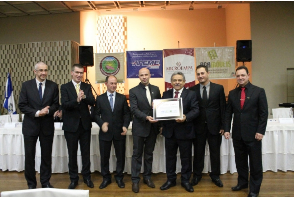 Tarcísio entregou uma placa homenageando as quatro entidades fundadoras da FEMICRO: APEME - Associação de Pequenas e Médias Empresas de Garibaldi; Microempa - Associação das Empresas de Pequeno Porte da Região Nordeste do Estado do Rio Grande do Sul, sediada em Caxias do Sul; AVIGA - Associação dos Vinicultores de Garibaldi; e AGAMÓVEIS - Associação Garibaldense das Indústrias de Móveis e Afins.